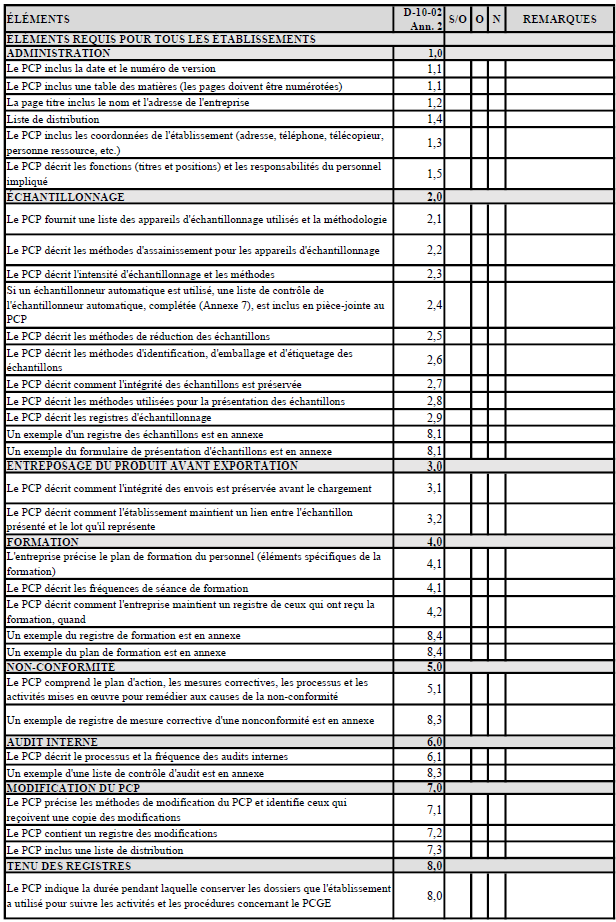 - L'entreprise doit rédiger et tenir à jour un PCP décrivant les méthodes d'échantillonnage utilisées dans le cadre du PCEG;