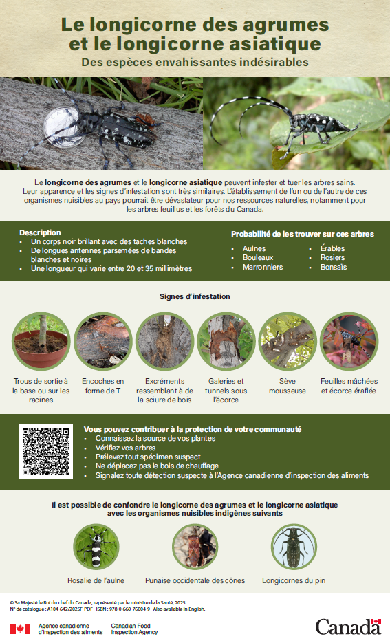 Fiches d'information imprimables : Longicorne des agrumes et longicorne asiatique – Des espèces envahissantes indésirables